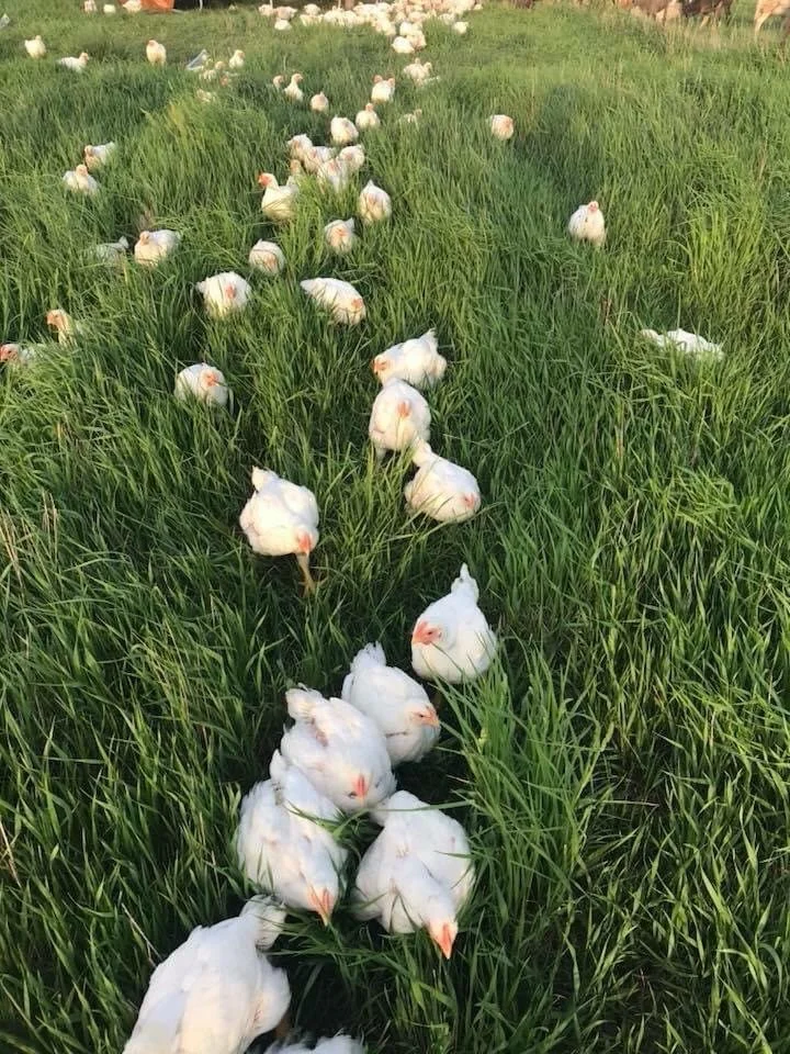 We care about the land, the environment, and we believe that what you eat matters. The traditional raising of meat birds is honestly just gross & we feel its unethical. So we do things differently. All of our birds are either free ranged or like our meat birds moved daily to fresh grass in “chicken tractors”. Our pasture raised chickens are fed a primary diet of locally milled feed, supplemented by a diet rich in insects, worms, legumes, grasses and seeds found naturally while foraging the pasture. The resulting meat is higher in vitamins, nutrients, and essential fatty acids due to the varied diet.